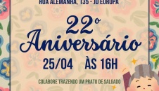 A Diretoria da Associação tem a alegria de convidar a todos para a comemoração de seu 22º Aniversário de Funcionamento que acontecerá no sábado dia 25/04/2026 às 16h em sua sede. Esperamos por todos!